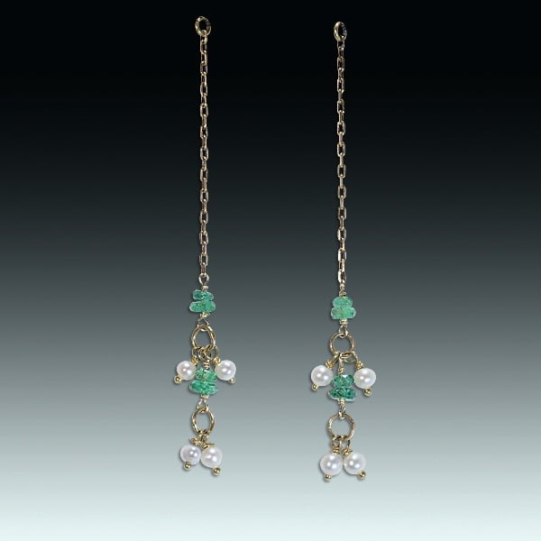 “And you Peaseblossom!” whimsical removable drops feature extra-fine emerald beads, with keshi pearls, and 18k gold chain.
